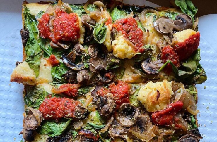 I recently tried this cheese on some pizza at Purgatory Pizza, and it was fire. So many vegan cheeses generate this phlegm thing in the back of your mouth. I think it happens because of non-caking agents they use, but the Miyoko’s liquid mozz doesn’t do this.