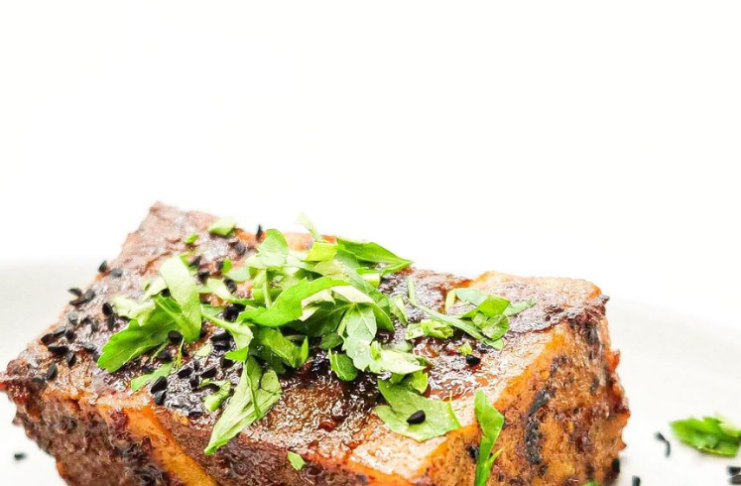 Above: The U.K.-based Faux Vegan Butchers & Delicatessen crafts a range of vegan “meats,” like this Glazed Pork Belly.